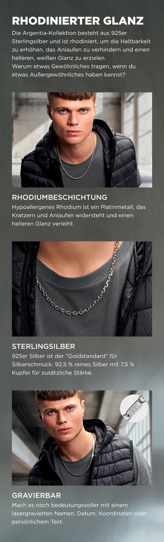 Argentia | 925er | 4 mm Rhodinierte Sterling Silber Fischgrätenkette Halskette