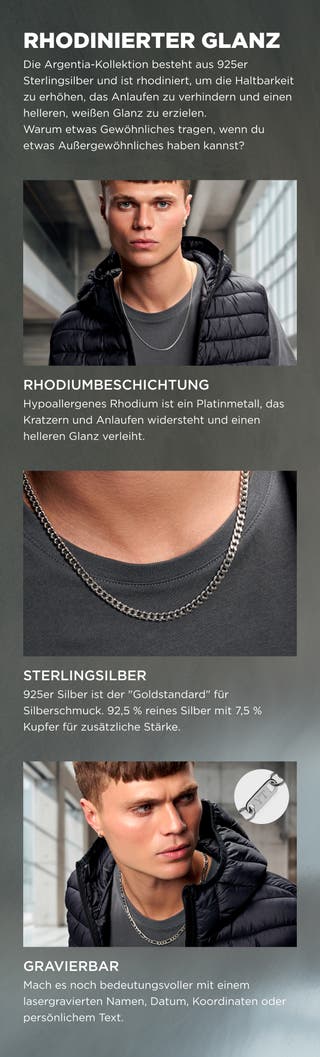 Argentia | 925s | 4 mm Rhodinierte Sterling Silber Figaro Kette Halskette