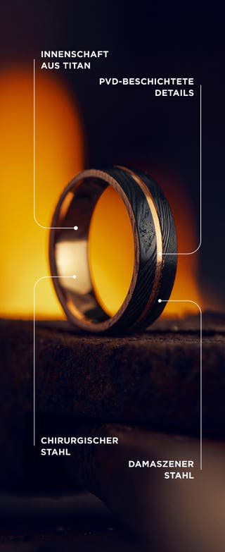 Farbe auswählen - Fortis | 7 mm Ring Aus Silbergrauem Und Silberfarbenem, Doppelt Gerilltem Damaststahl Und Roségoldfarbenem Titan