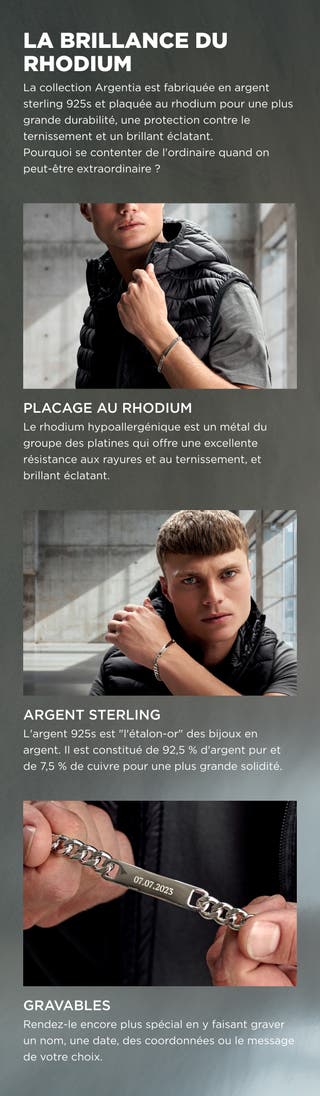 Argentia | 925s | Bracelet avec plaque d'identification en argent sterling plaqué en rhodium de 10 mm