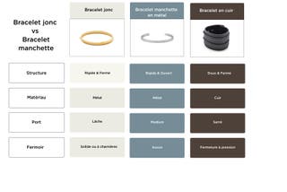 Si vous vouliez connaître la différence entre un bracelet jonc et un bracelet manchette, en voici les définitions :