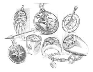 Les symboles les plus emblématiques du voyage sont la boussole et la carte. La forme ronde de ceux-ci nous a permis de créer des combinaisons intéressantes et des designs complémentaires.