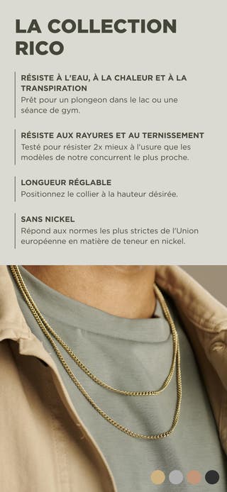 Collier noire Rico à double chaîne Collier argenté Rico à double chaîne  Collier doré Rico à double chaîne  Collier Rico à double chaîne couleur or rose