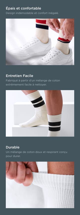 DryFeel | Lot de 3 paires de chaussettes de tennis blanches antique à rayures noires en coton