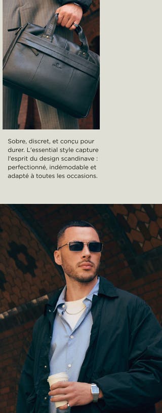 Des salles de réunions jusqu'aux sorties entre amis, le style "essential" a été conçu pour l'amateur d'accessoires sobres et de haute qualité. Élaboré avec le plus grand soin et facile à assortir avec n'importe quelle tenue.