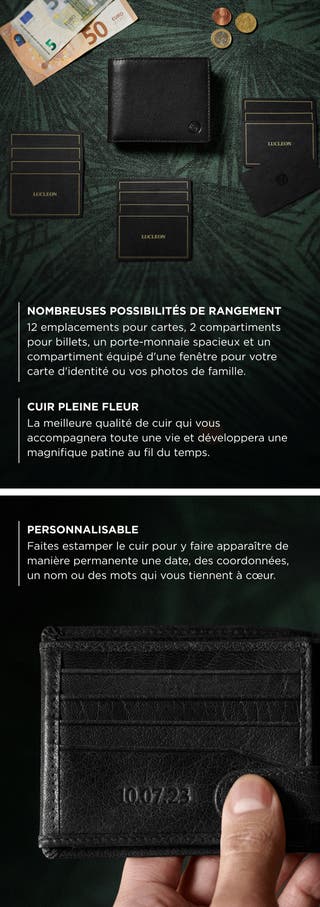 - Peut contenir jusqu'à 20 cartes, espèces et reçus