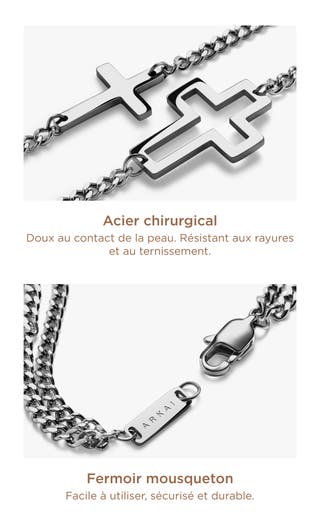 Choisissez la couleur - Unity | Bracelet à double chaîne en acier inoxydable argenté avec breloques en croix