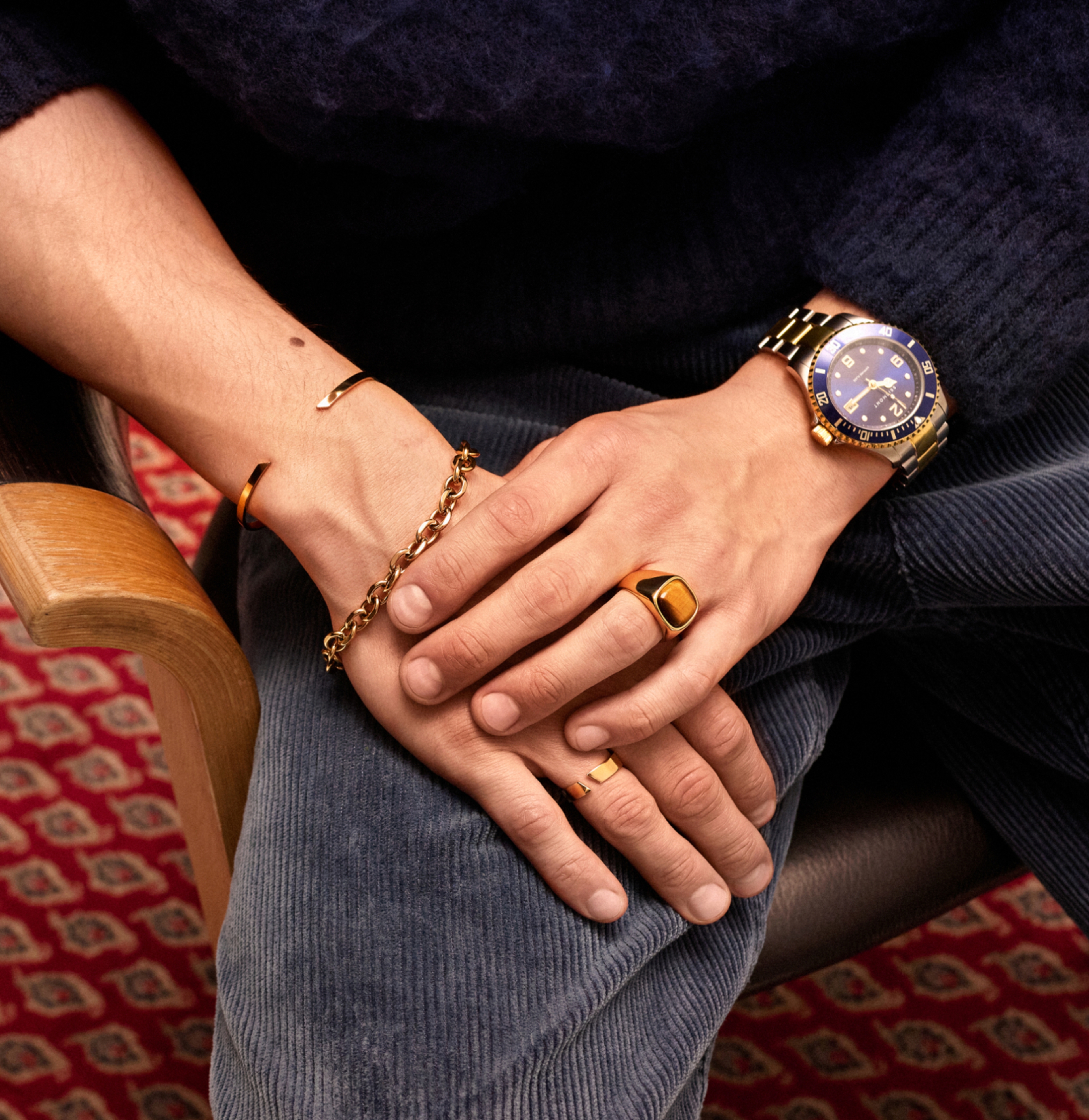 Ring mit Kompass-Signet aus chirurgischem Stahl in Goldton